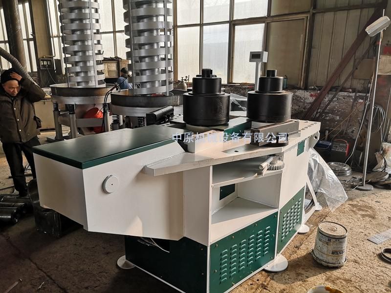 床身為一封閉式框架結(jié)構(gòu),驅(qū)動兩輥位置固定,可以進行正反方向旋轉(zhuǎn),油缸推進模可前后移動,兩固定模的轉(zhuǎn)動為液壓傳動、由液壓馬達驅(qū)動。推進模由液壓油缸的伸縮來完成。傳動平穩(wěn)、安全可靠;在固定模的兩側(cè)設(shè)有托輥裝置,托輥既可以做升降運動,也可以做旋轉(zhuǎn)運動。配合模具與導(dǎo)向輪同時作用有利于控制型材的卷制精度。
